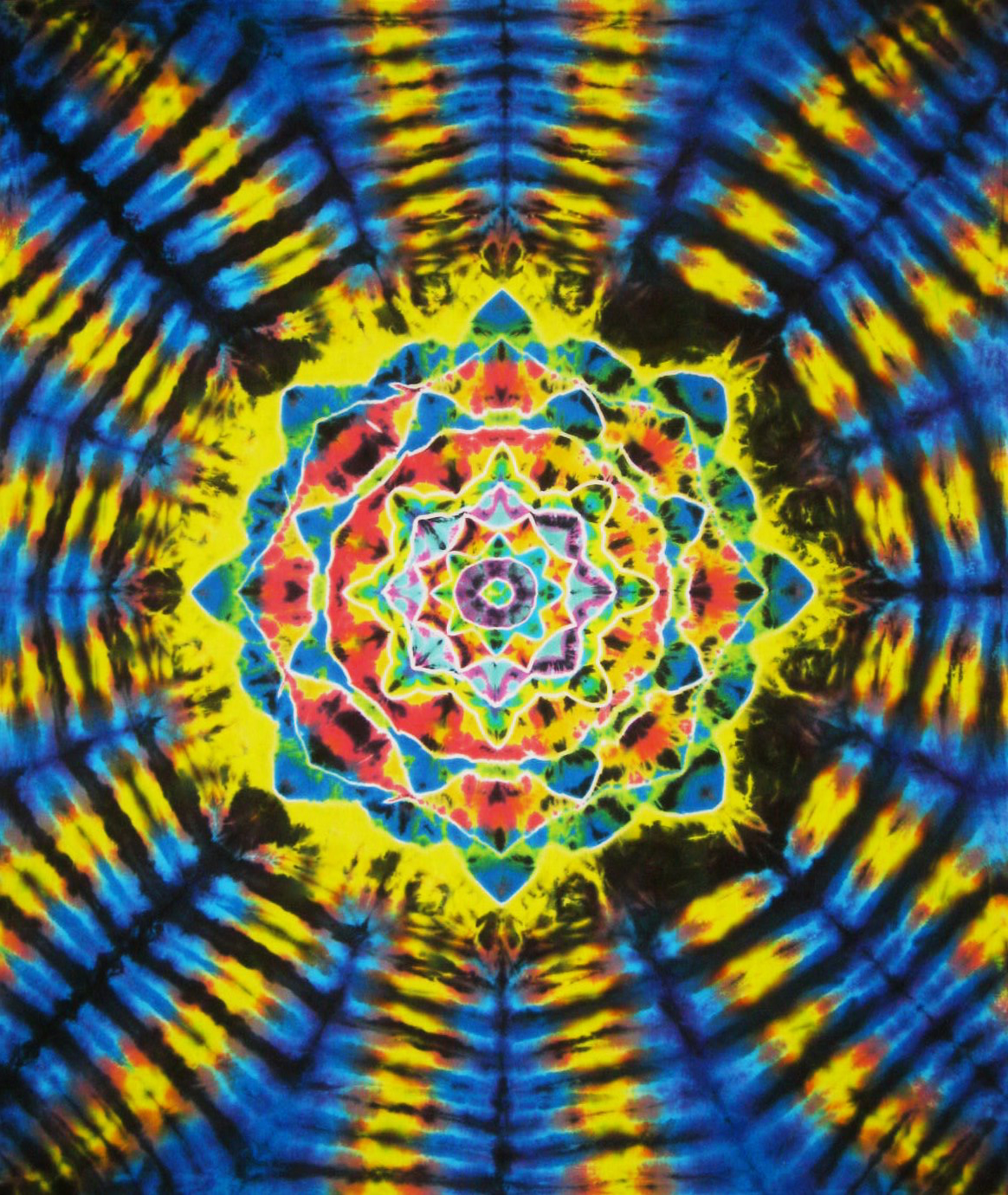 As for Wildflower, our tie dying techniques differ from the simple hippie method popularized in the sixties and seventies. We use a combination of different kinds of string and rubber bands. We carefully apply dye using droppers, paint brushes and squeeze bottles. This allows much more control over the finished product and visibly more detail. We use commercial quality fiber-reactive dyes and our advanced tie dyeing techniques leave each garment fade and bleed free. We are constantly experimenting to perfect and develop our tie dyes and believe you will be pleasantly surprised by the vibrant colors and unusual designs.