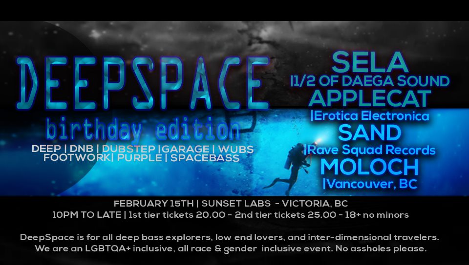 Deep space is for all deep bass explorers, low-end lovers, and inter-dimensional travellers. This is an LGBTQA inclusive, all race & gender inclusive, all walks of life, all peoples and creatures inclusive event. Any bigotry will not be tolerated.
