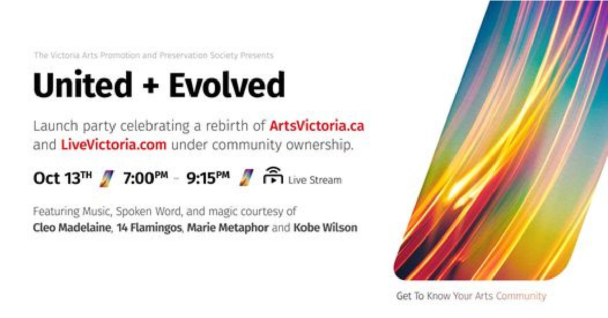UNITED + EVOLVED: Celebrating a rebirth of LiveVictoria.com and ArtsVictoria.ca under community ownership.