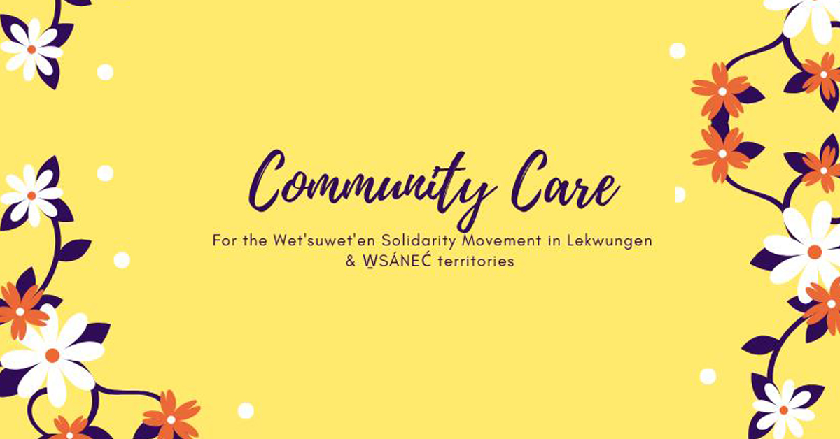We stand in solidarity with Indigenous Land defenders fighting for Indigenous rights and our collective survival on this planet. This work is a labour of love and it comes with a price. We are making very real sacrifices so that we can all be better ancestors and build a better world. This is healing work, and to ensure we continue in solidarity we must build self and community care into this movement.