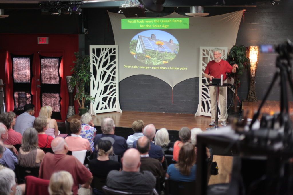 “Guy Dauncey’s brilliant and intelligent presentation shows a positive and possible vision of the future, including a rapid transition off of fossil fuels. He restores hope, and takes away the fear of change at a time when it is so crucial that we do so.” – Jean Gelwicks.