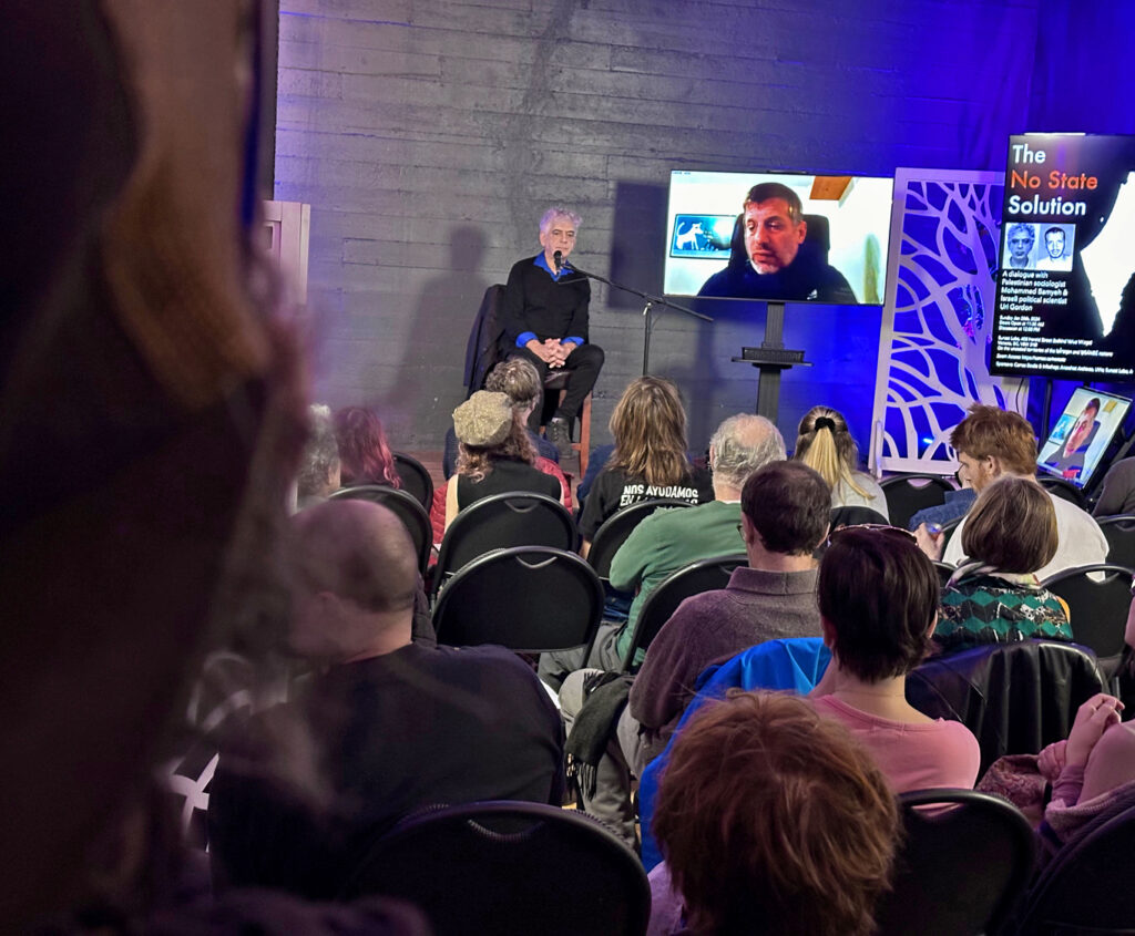The No State Solution was a complex, harmonious dialogue with Palestinian sociologist Mohammed Bamyeh and Israeli political scientist Uri Gordon, exploring through an anarchist lens the systemic oppression and displacement of Palestinian people and the unequal cycle of deadly violence that continues to consume the lives of Israelis and Palestinians.