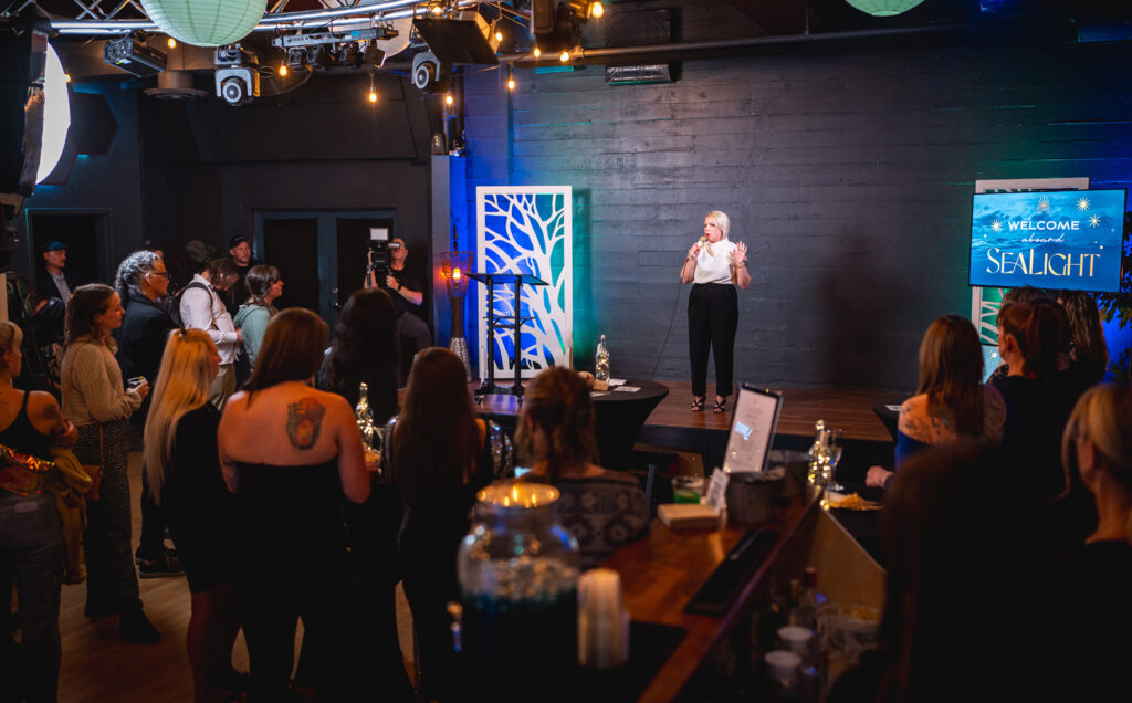 The event’s sponsors, Victoria Tug & Barge and the ILWU Local 400, offered their generous support, making it possible to bring SeaLight’s message to an even larger audience. The studio space at Sunset Labs was beautifully prepared, and the high energy of the crowd brought a spirit of excitement and camaraderie that only added to the atmosphere. Kamila expressed her deep gratitude, saying, “It truly filled my heart to have you there, and the experience exceeded anything I could have hoped for.”