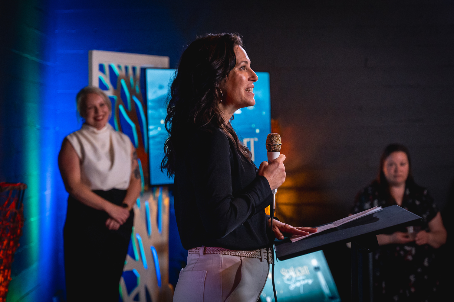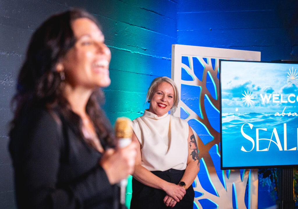 The event’s lineup of speakers was a true highlight. Kamila was joined by esteemed colleagues who each brought their own dynamic perspectives and experiences. This powerful group included Loren Perraton, General Manager at Victoria Tug & Barge; Jason Woods, President at ILWU Local 400; Wyll River from Soul Craft Counselling & Coaching; Captain Eden Ki from HaiSea Marine; and Commanding Officer Lara Barrett of the CCGS Jean Goodwill at the Canadian Coast Guard. Each speaker shared heartfelt stories, insights, and a steadfast commitment to SeaLight’s vision of an equitable future in the maritime sector.
