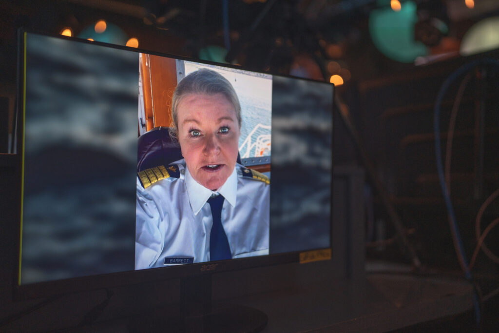 The event opened with a warm welcome to those gathered in Sunset Labs and to viewers tuning in from across Canada via livestream on Facebook, Zoom, and YouTube, thanks to Sunset Labs’ advanced broadcast capabilities. By 3 pm, the studio was buzzing with anticipation as Kamila Calko, SeaLight’s founder and the first woman to qualify for the Pacific Pilotage Authority’s examinations, took the stage. Kamila’s passion for transforming the maritime industry was palpable as she spoke about her journey and her mission to make waves of change for women on the water. “After two decades navigating uncharted territory as a female captain, I wanted to create a beacon for women in the industry,” she shared, describing SeaLight as a movement fueled by education, community, and support for women at sea.