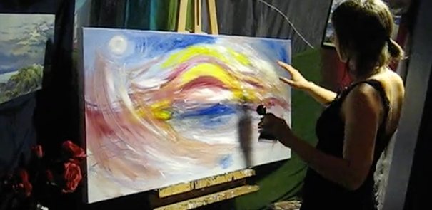 Urbanheart Live artist Linda Mummery gets her hands dirty while filling Sunset’s art space with colour & energy! Pop n Lock artist Myagi dropping beats in the background.